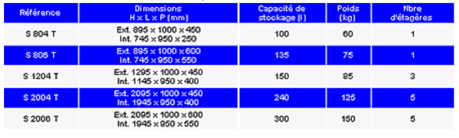 • Etagères réglables en hauteur faisant bac de rétention,