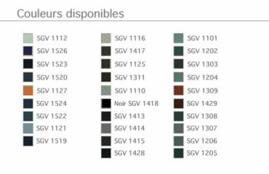 SGV 1112, SGV 1526, SGV 1523, SGV 1520, SGV 1127, SGV 1524, SGV 1522, SGV 1121, SGV 1519, SGV 1116, SGV 1417, SGV 1125, SGV 1311, SGV 1110, Noir SGV 1418, SGV 1413, SGV 1414, SGV 1415, SGV 1428, SGV 1101, SGV 1202, SGV 1303, SGV 1204, SGV 1309, SGV 1429, SGV 1308, SGV 1307, SGV 1206, SGV 1205